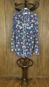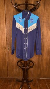 ③フリンジ付青のウエスタンシャツ/¥30,000-