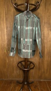 ③エメラルドグリーンストライプドレスシャツ/¥25,000-