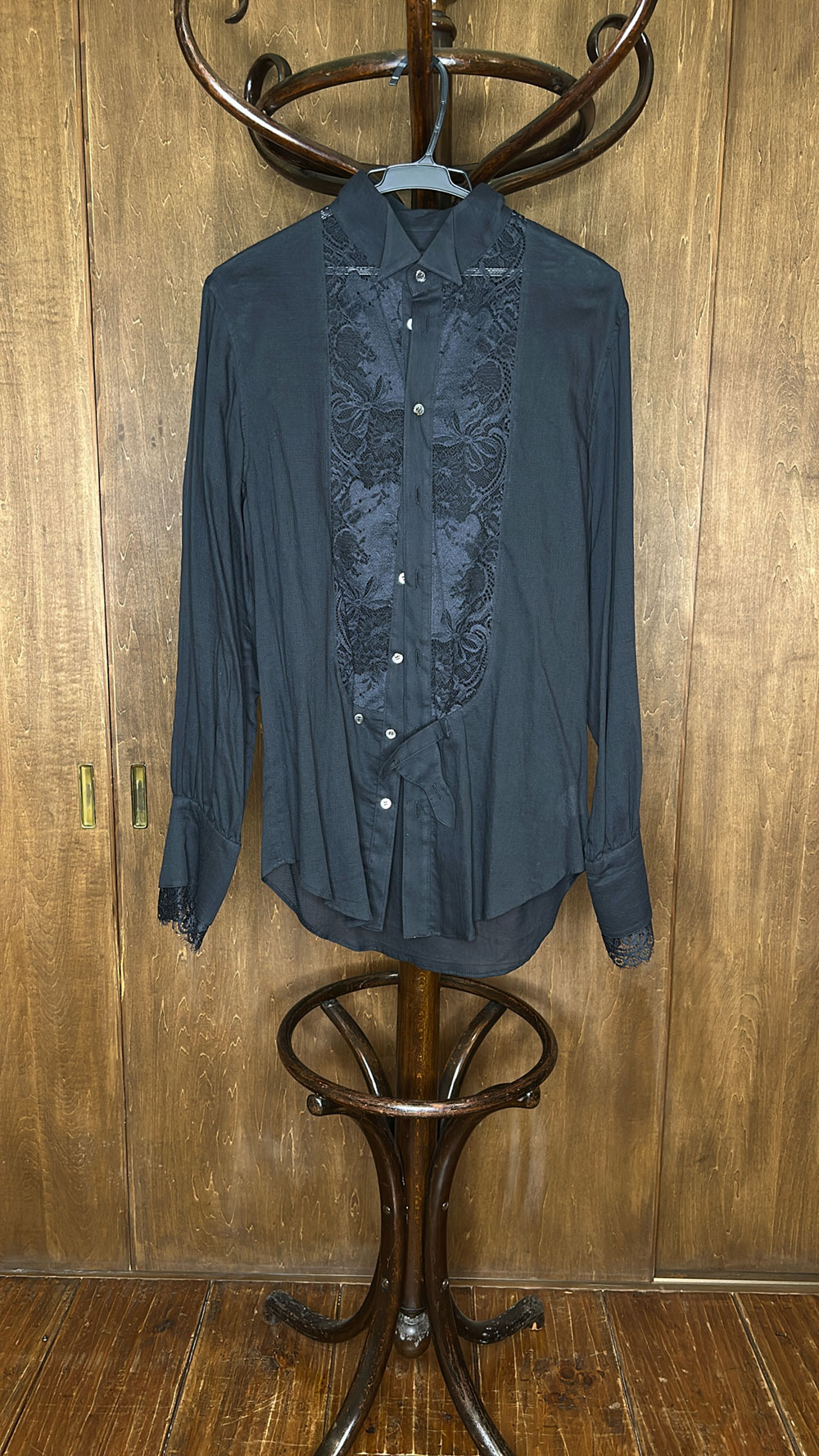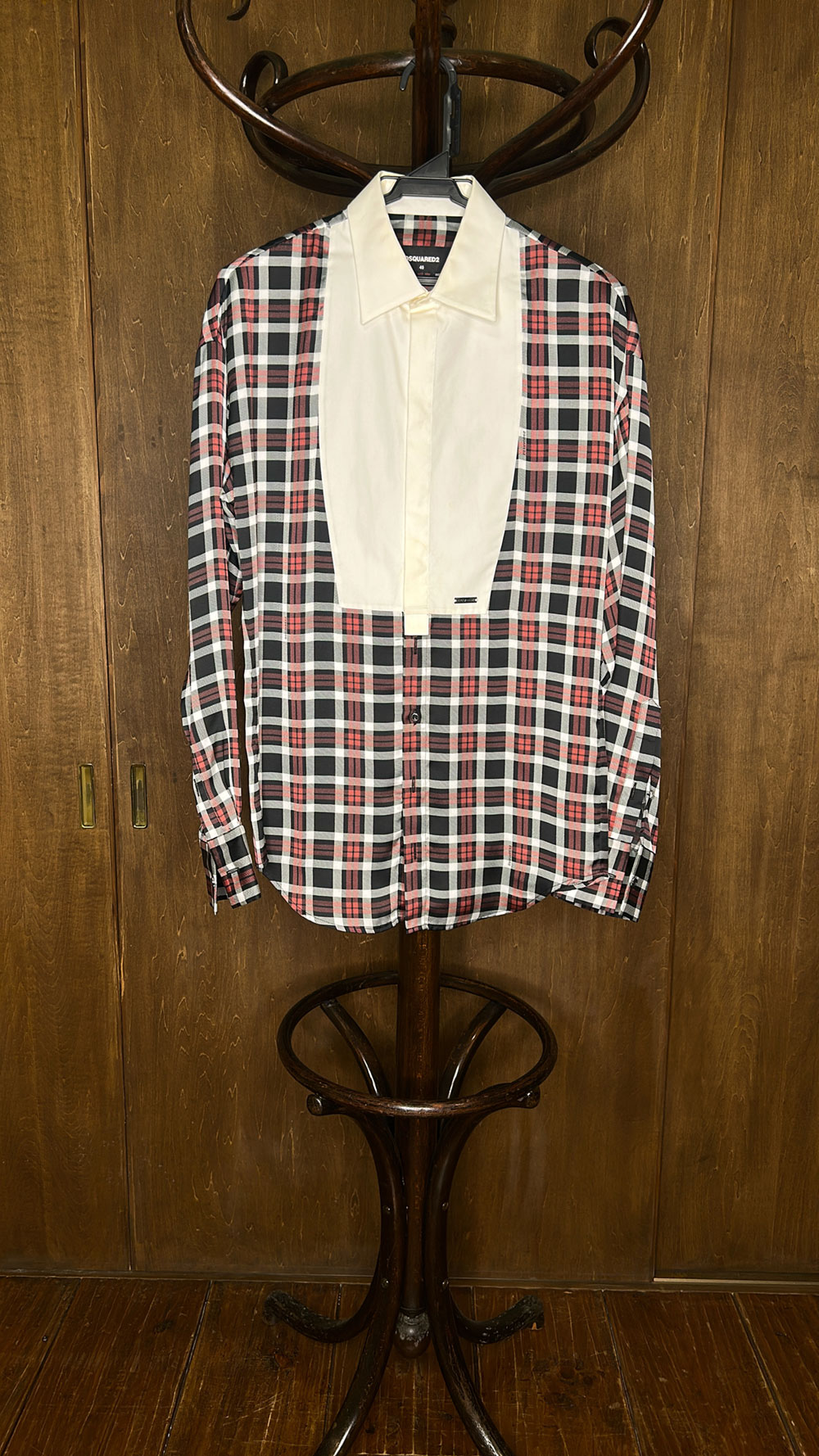⑤黒ピンク白チェックドレスシャツ/¥20,000-